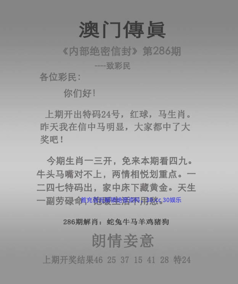 286期澳门马会传真:今期生肖一三开,免来本期看四九。牛头马嘴对不上,两情相悦划重点。一二四七特码出,家中床下藏黄金。天生一副劳碌命,饱暖生活不用愁。