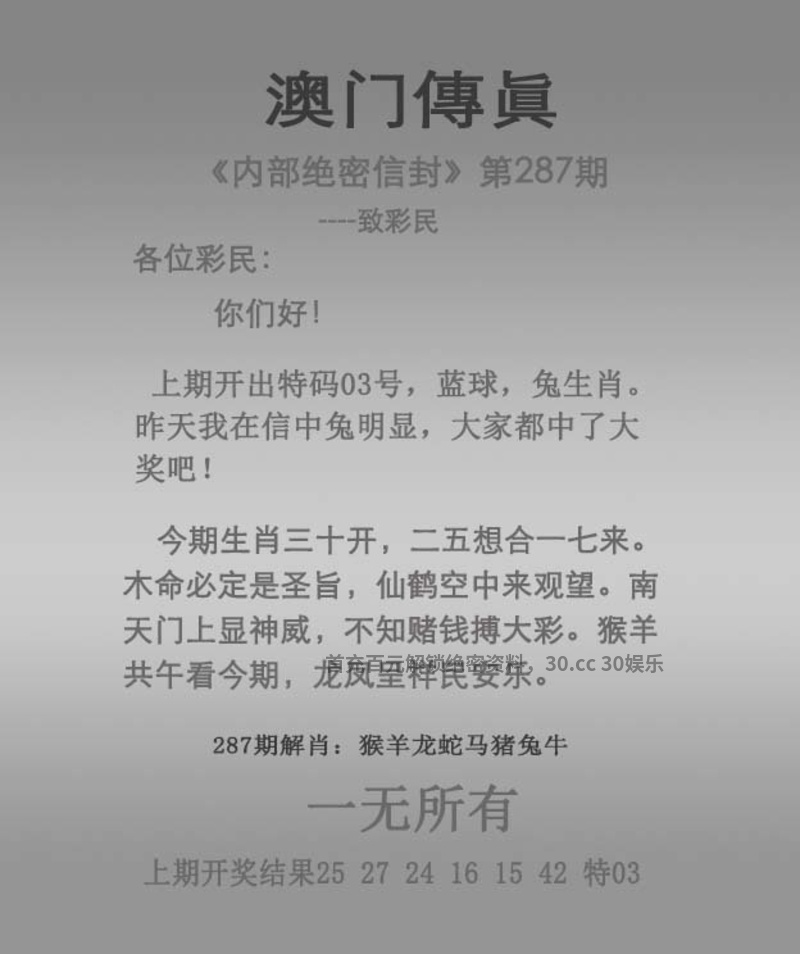 287期澳门马会传真:今期生肖三十开,二五想合一七来。木命必定是圣旨,仙鹤空中来观望。南天门上显神威,不知赌钱搏大彩。猴羊共午看今期,龙凤呈祥民安乐。